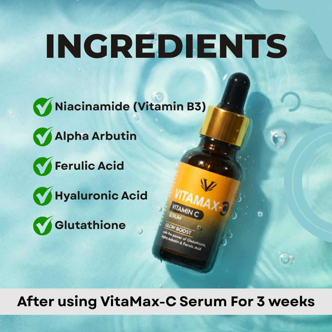 After cleansing, apply 3–4 drops of Vitamax-C Serum to your freshly cleaned face and neck before using any other skincare products. Although it can be used twice daily (morning and evening), morning use is preferred. For best results, use sunscreen during the day. SUITABLE FOR ALL SKIN TYPES